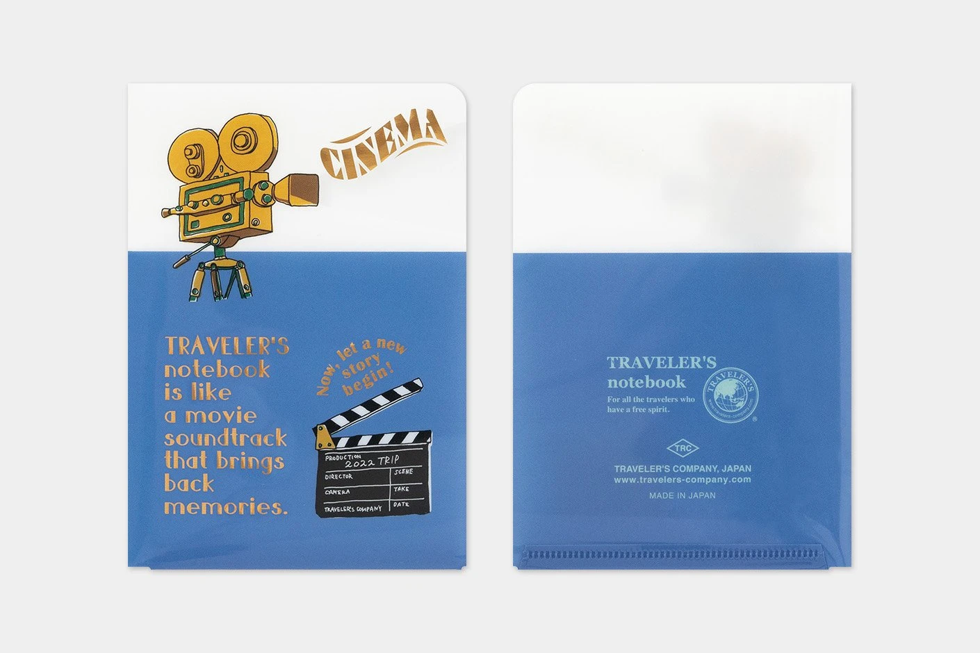 Eine kleine, bunte Klarsichthülle, die Tickets, Kassenzettel und anderes in Deinem kleinen Traveler’s Notebook hält.